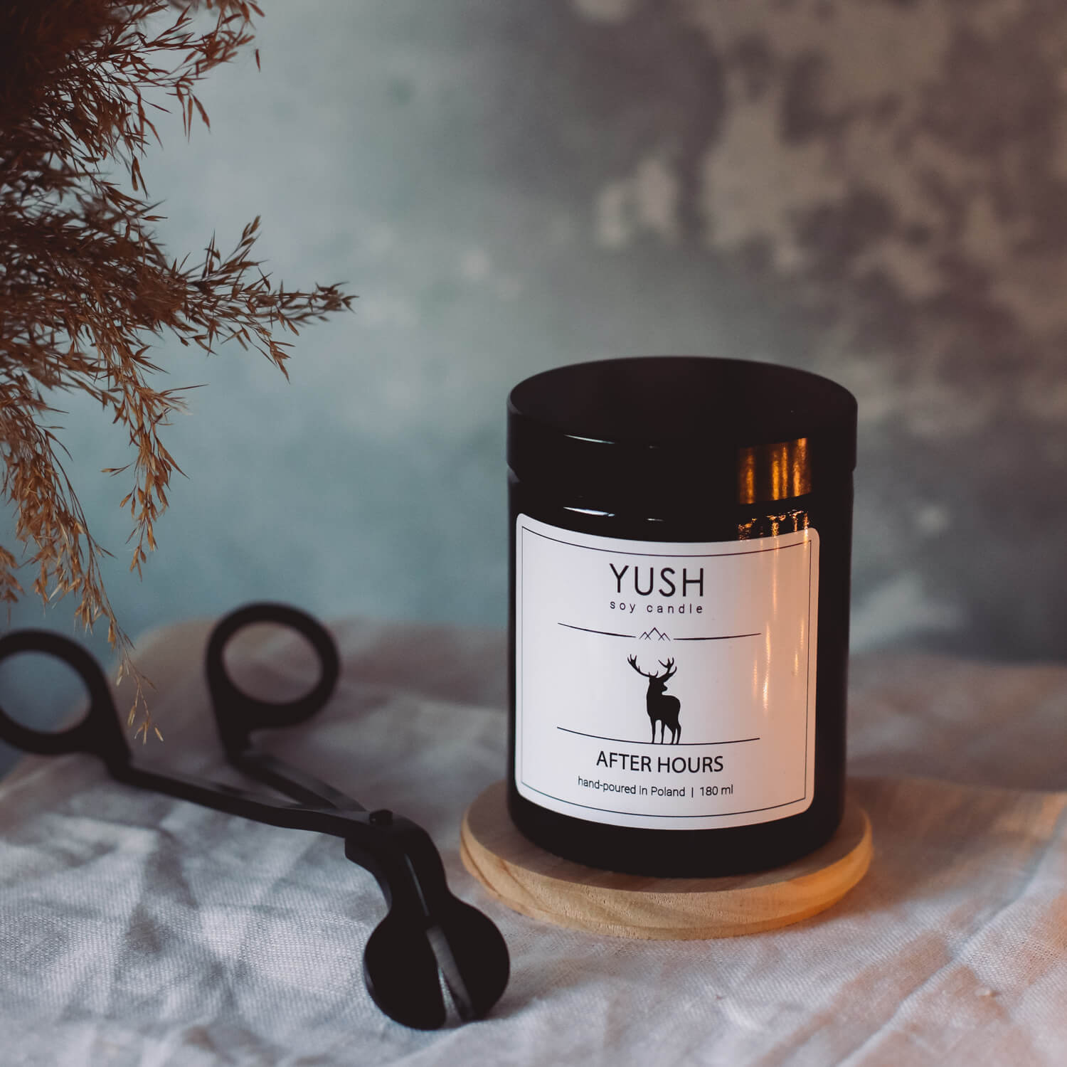 Świeca sojowa After hours to 120ml wosku sojowego z najcudowniejszymi aromatami: grejpfrutem, drzewną bazą, paczulą i ambrą. Część z naszych klientów w After hours odnajduje także zapachy cytrusów i aromatycznej żywicy. Każda świeca sojowa zamknięta jest w szklanym słoiczku z czarną zakrętką. Każdą świecę możesz zapakować w czarny woreczek zgodnie z filozofią No Waste – dodaj do koszyka – kup woreczek YUSH »