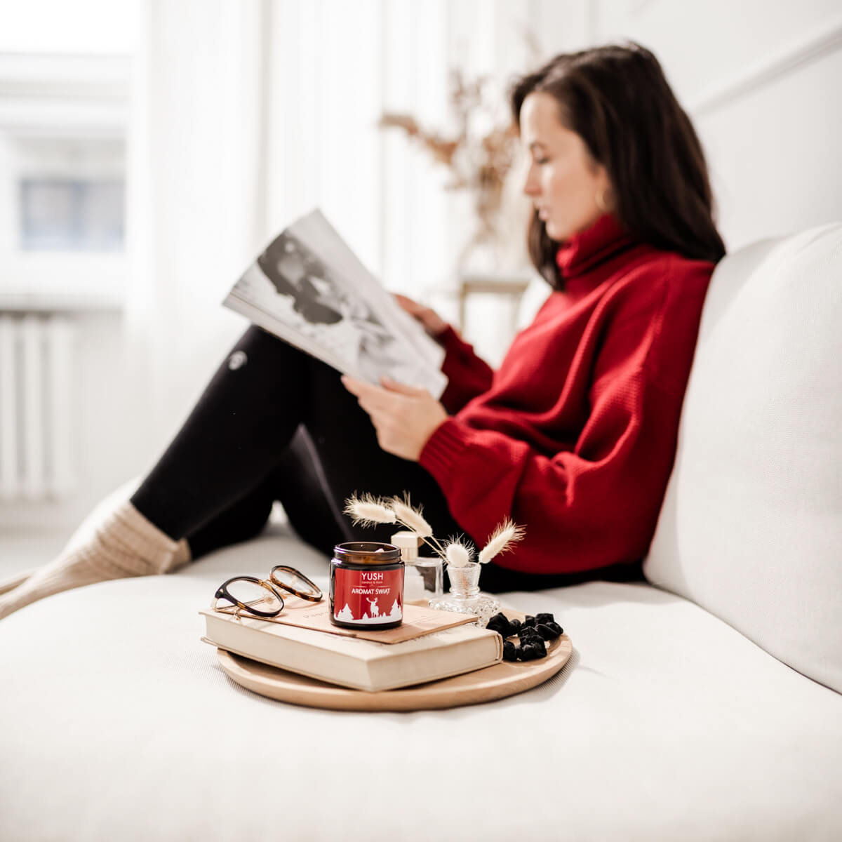 Kompozycja zapachowa oddaje ducha Świąt. Zapach rozwija się z zapałem, najpierw wyczujesz aromat pomarańczy i cytryny, następnie delikatnego jaśminu i świeżej sosny objętej ciepłem cynamonu, goździków i imbiru. Wszystko to delikatnie otacza zmysłowe drewno i piżmo. Wspaniała, świąteczna atmosfera zaklęta w małym słoiczku YUSH.
