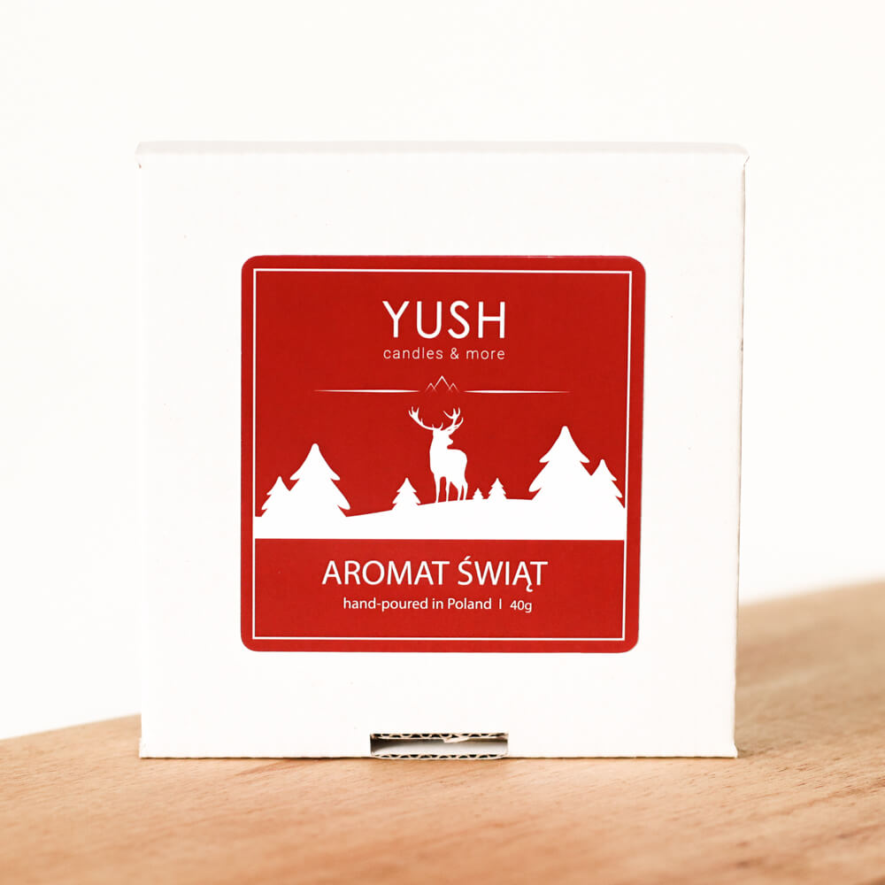 Kompozycja zapachowa Aromat Świąt to nurtujący, zapadający w pamięć zapach świątecznego stołu. Zapach rozwija się z zapałem, najpierw wyczujesz aromat pomarańczy i cytryny, następnie delikatnego jaśminu i świeżej sosny objętej ciepłem cynamonu, goździków i imbiru. Wszystko to delikatnie otacza zmysłowe drewno i piżmo.