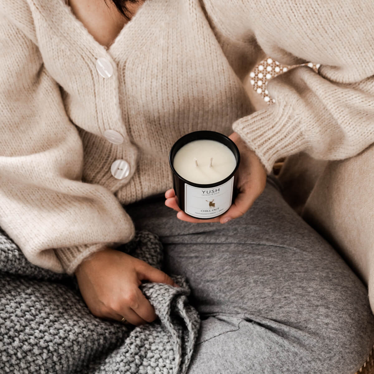 Świece sojowe palą się średnio ok. 2 razy dłużej od tych wykonanych z parafiny. Nie szkodzą zdrowiu. Knot świecy sojowej jest bawełniany i niemalowany. Świece sojowe Yush są wegańskie, wosk nie zawiera żadnych sztucznych dodatków.