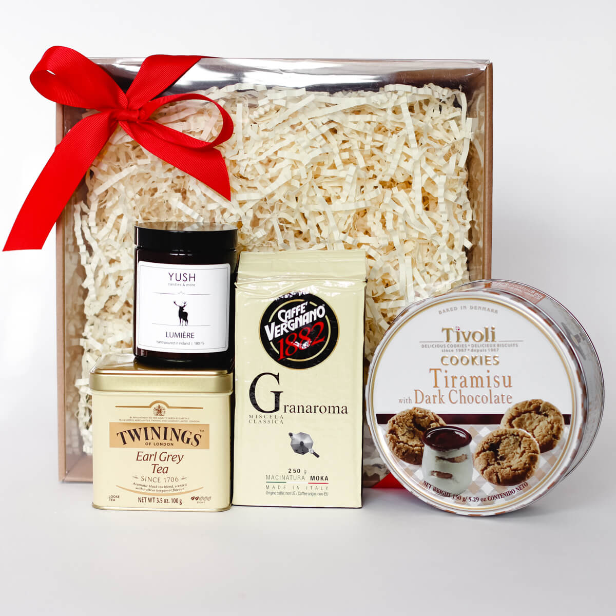 Ten zestaw to idealny prezent dla każdego miłośnika świec i zapachów! Do świecy zapachowej dochodzi tutaj włoska kawa oraz ciasteczka o smaku tiramisu – każdy pasjonat włoskich smaków doceni to połączenie. A dla równowagi dołączona jest również herbata sypana Earl Grey.