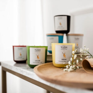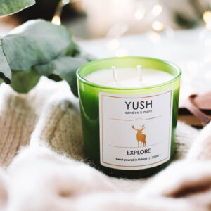 Świece sojowe palą się średnio ok. 2 razy dłużej od tych wykonanych z parafiny. Nie szkodzą zdrowiu. Knot świecy sojowej jest bawełniany i niemalowany. Świece sojowe Yush są wegańskie, wosk nie zawiera żadnych sztucznych dodatków.