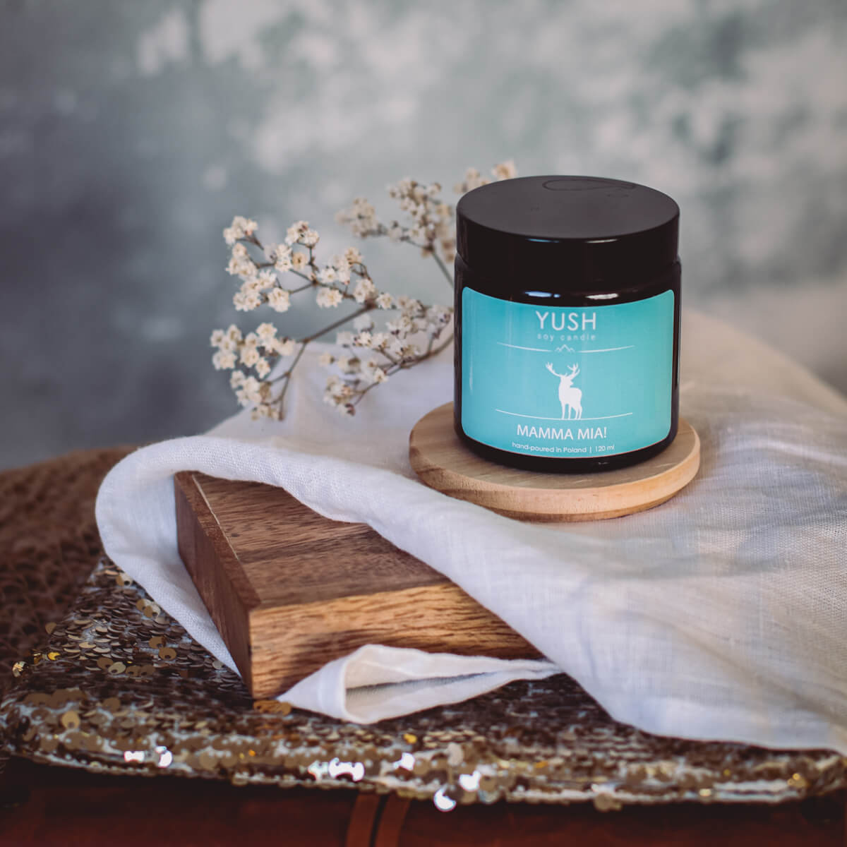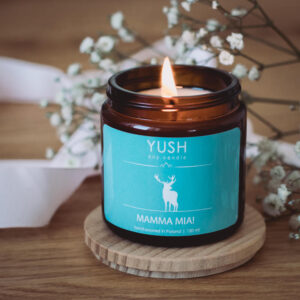 Szukając odpowiedniej kompozycja na specjalne i wyjątkowe okazje, starałam się bazować na własnych skojarzeniach z rodzinnym domem. Chciałam również, by zapach mógł towarzyszyć Ci w domu przy innych okazjach, a kolor świecy wywoływał uśmiech 🙂 Jako trzeci cen postawiłam sobie, by zapach był słodki, ale nie za bardzo… By był głęboki, ale również bardzo przyjemny. Tak powstała „MAMMA MIA!”. Elegancka i ponadczasowa. Pyszna mieszanka egzotycznych owoców, karmelu i miodu w połączeniu z urzekającą mocą paczuli i wanilii. Brak tu jednej, dominującej nuty – wszystko ze sobą współgra i tworzy idealny „kęs”.