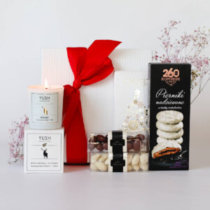 Ten zestaw to idealny prezent dla każdego miłośnika świec i zapachów! Elegancki komplet z cudownie pachnącą świecą oraz słodkimi dodatkami z piernika.