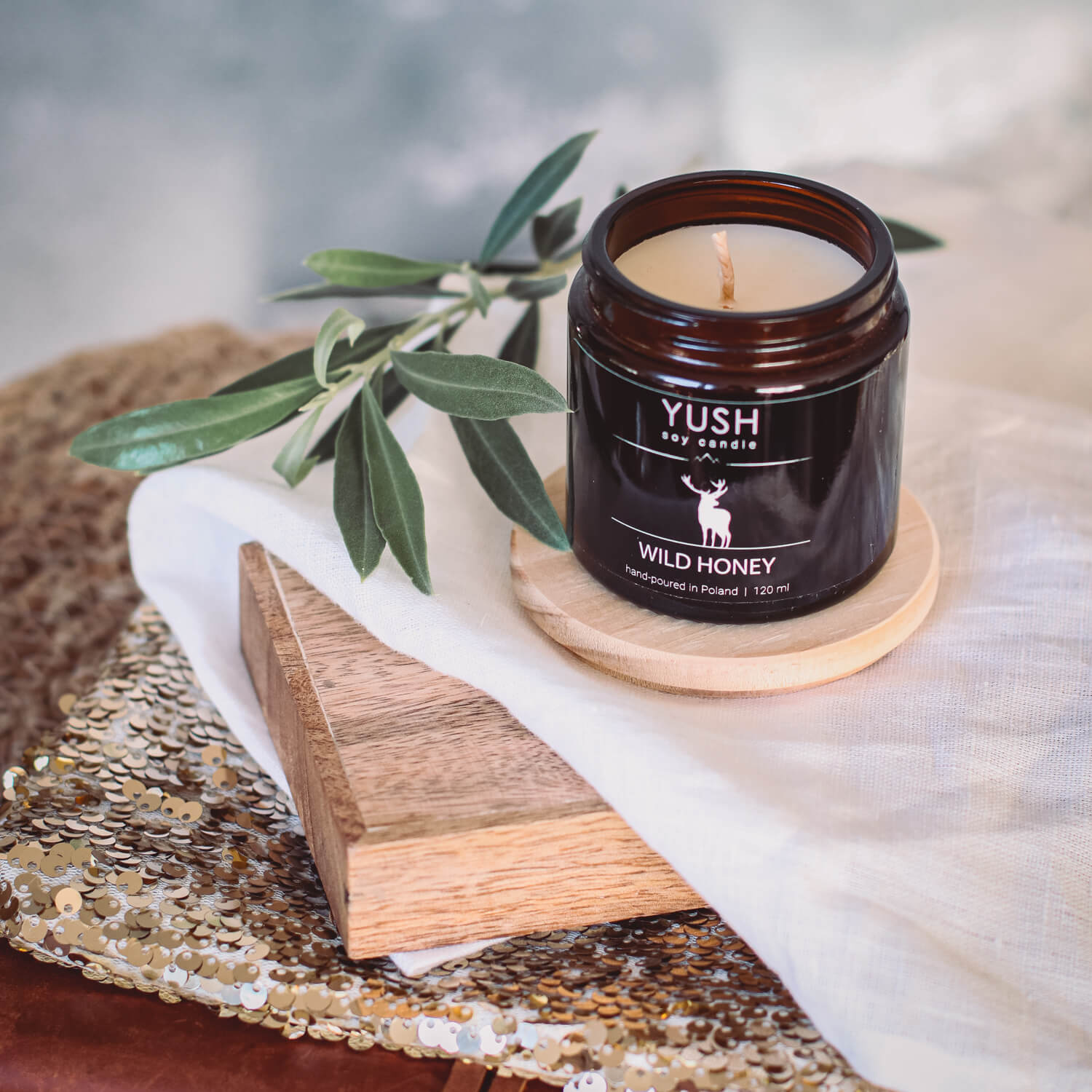 Świeca sojowa Wild Honey to 120ml wosku sojowego. Zapach jest słodki, bazujący na nektarze z polnych kwiatów. Dla miłośników miodu to idealna kompozycja. Cudowna na wieczór z herbatą i książką.