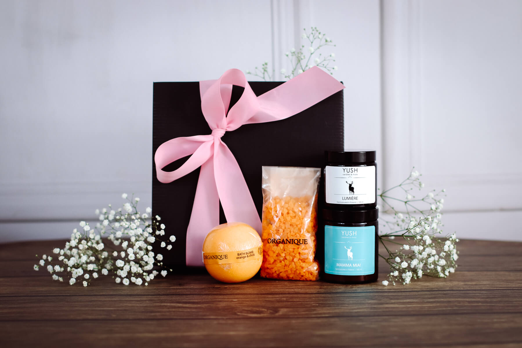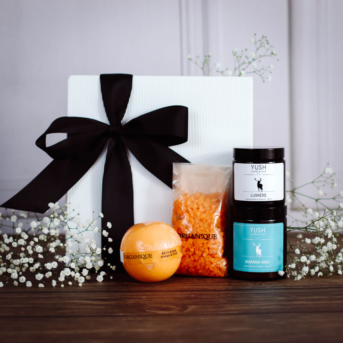 Do każdego zestawu na życzenie możesz dobrać dedykowany bilecik z dostępnych wzorów do wyboru (napisz nam w uwagach do zamówienia dedykację, a dopiszemy ją ręcznie na odwrocie – maksymalnie 8 słów). Możesz również wybrać inny zapach świecy z naszej oferty w tej samej cenie.
