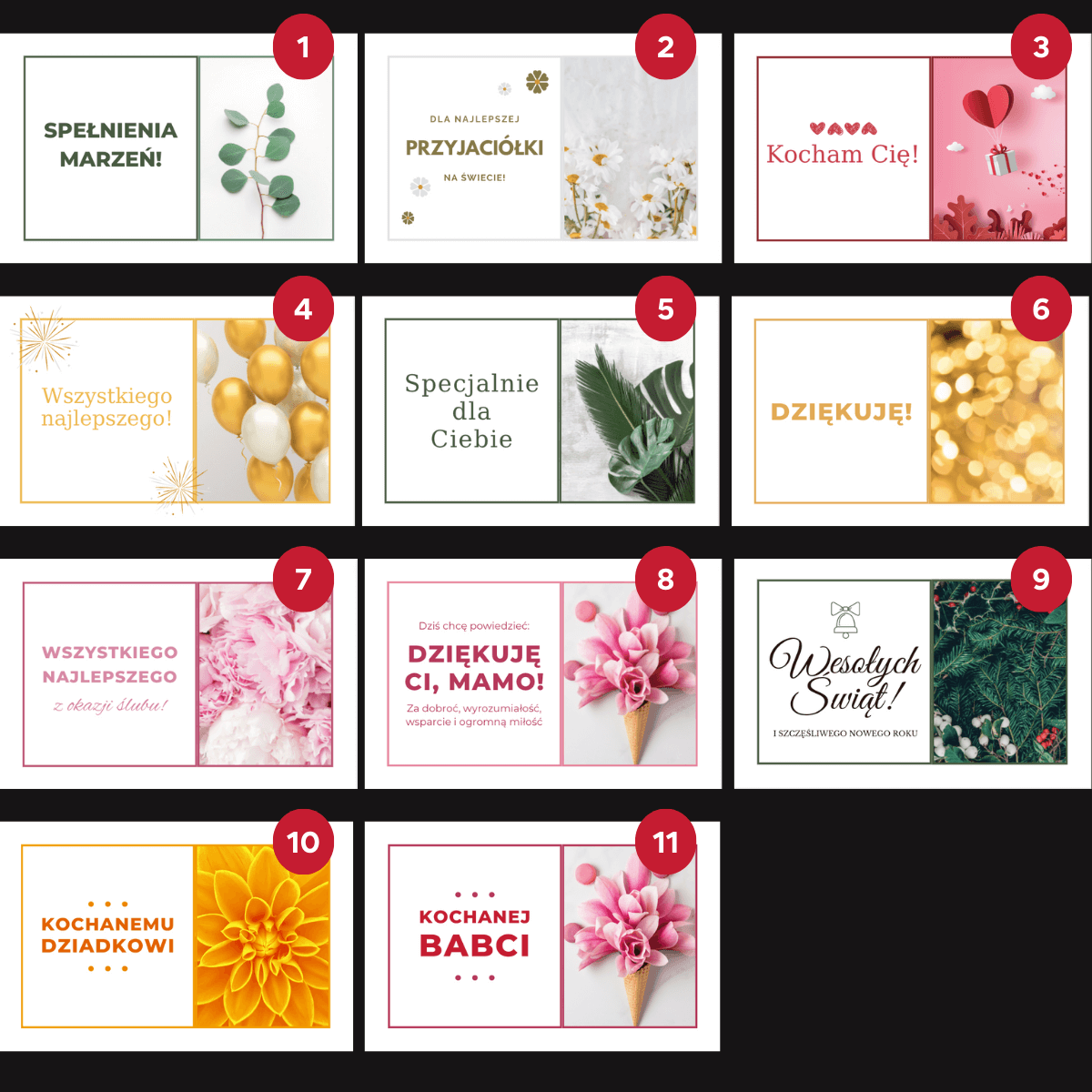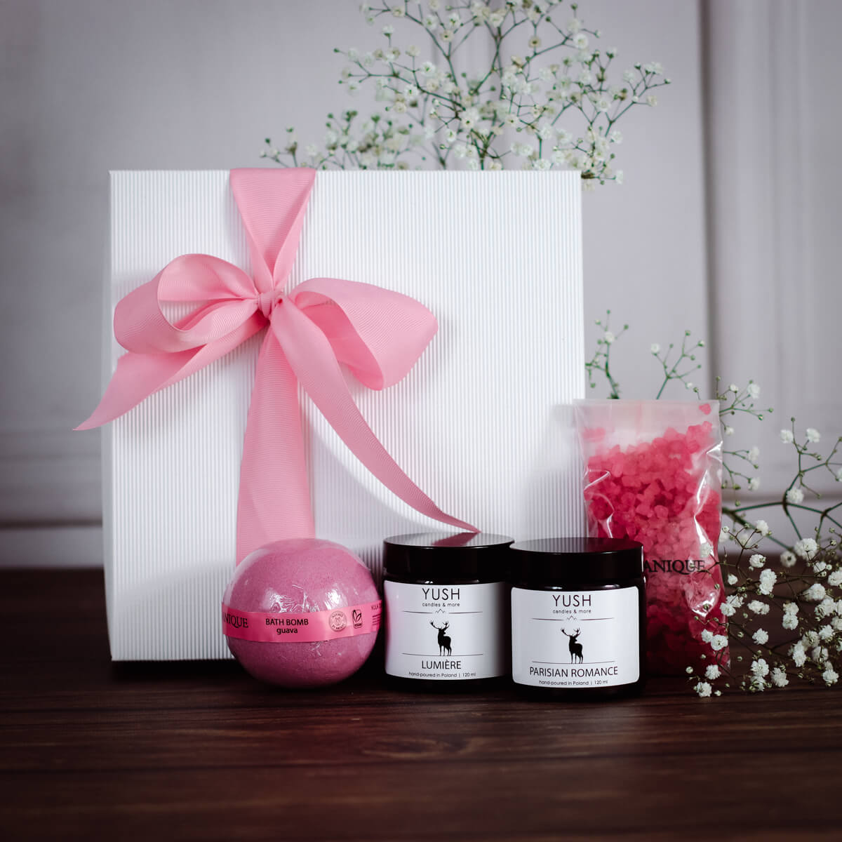 Do każdego zestawu na życzenie możesz dobrać dedykowany bilecik z dostępnych wzorów do wyboru (napisz nam w uwagach do zamówienia dedykację, a dopiszemy ją ręcznie na odwrocie – maksymalnie 8 słów). Możesz również wybrać inny zapach świec z naszej oferty w tej samej cenie.