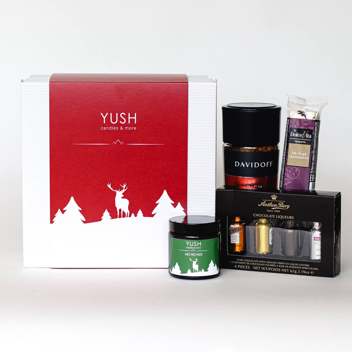 Idealny pomysł na udany prezent świąteczny. Ten świąteczny zestaw prezentowy zawiera przepyszną kawę, pyszne słodkości i aromatyczną świecę zapachową. Zestaw prezentowy idealny do wręczenia bliskiej osobie.