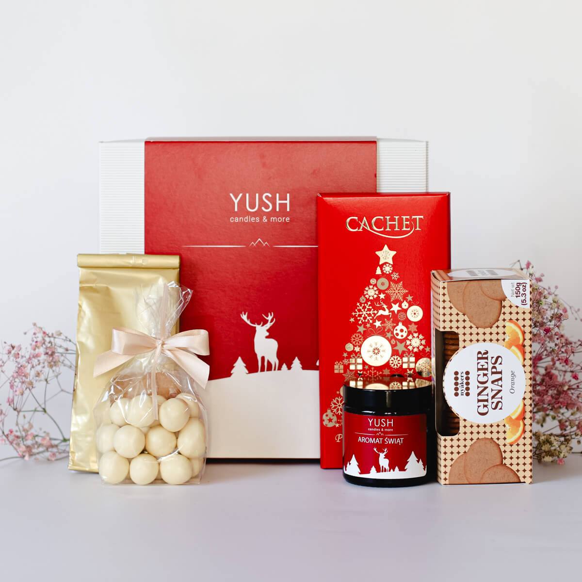 Ten zestaw to idealny prezent dla każdego miłośnika świec i zapachów! Pod choinką będzie się przepięknie komponował. Elegancki komplet z cudownie pachnącą świecą oraz słodkimi dodatkami.